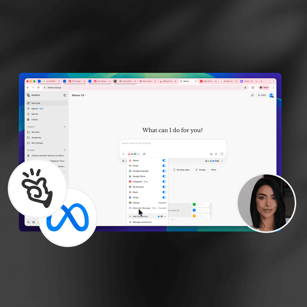 Tenemos experiencia utilizando las herramientas de IA y automatización más populares. Nos gusta variar en nuestras lecciones para tener un poco de todo. Ya sea que te convenga utilizar Claude, Manus, Gemini, ChatGPT, Claude, Kling, Higgsfield, Freepik, n8n, Lovable, Replit, o cualquier otra; te tenemos cubierto.